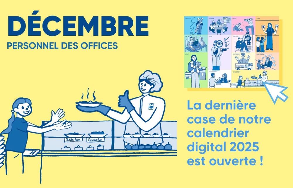 285 cantinières, 67 offices, plus de 13 000 enfants accueillis chaque jour : derrière chaque repas, il y a un sourire, une vigilance, un métier. Découvrez la dernière case de l’année : « Décembre – Personnel des offices »